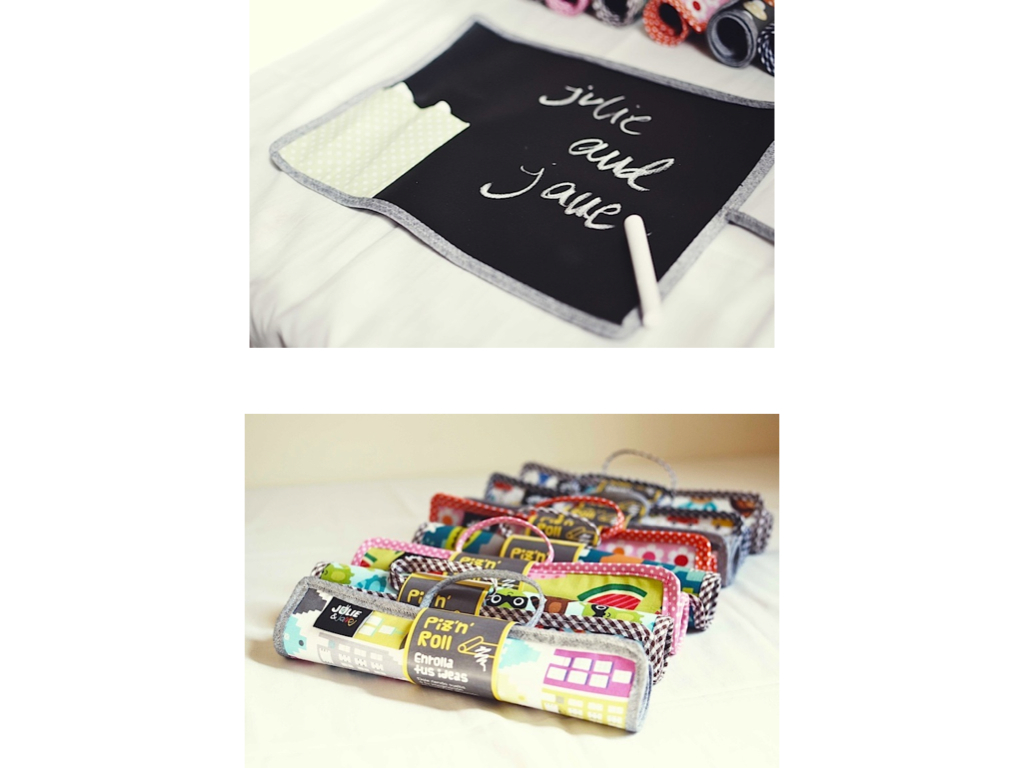 Hoy os presento el proyecto de Marta, una mamá emprendedora que, como tantas otras, después de quedarse en el paro, decidió poner en marcha una idea que le venía rondando desde hacía tiempo. Bueno, casi que esta idea la terminó de dar forma su pequeña artista, para la que siempre llevaba pinturas y papel a todas partes. Se trata de Julie & Jane, una marca de productos infantiles creados a partir del tejido de pizarra.