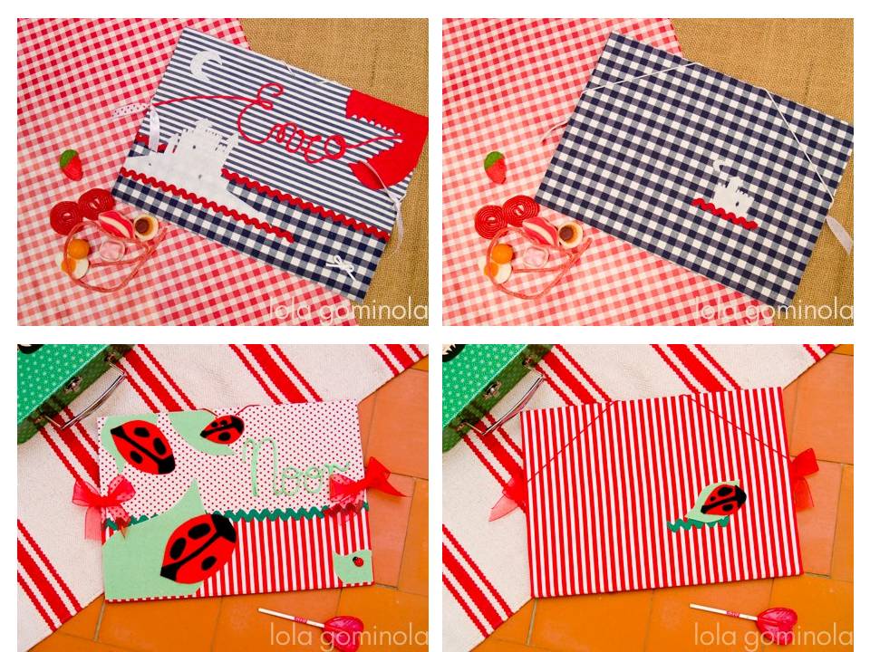 Sus trabajos son realizados de manera artesanal y están dirigidos fundamentalmente a bebés entre 0 y 24 meses, pero también fundas, bolsos e incluso carpetas personalizadas para las mamás. Os muestro una pequeña selección de lo que os podéis encontrar:
